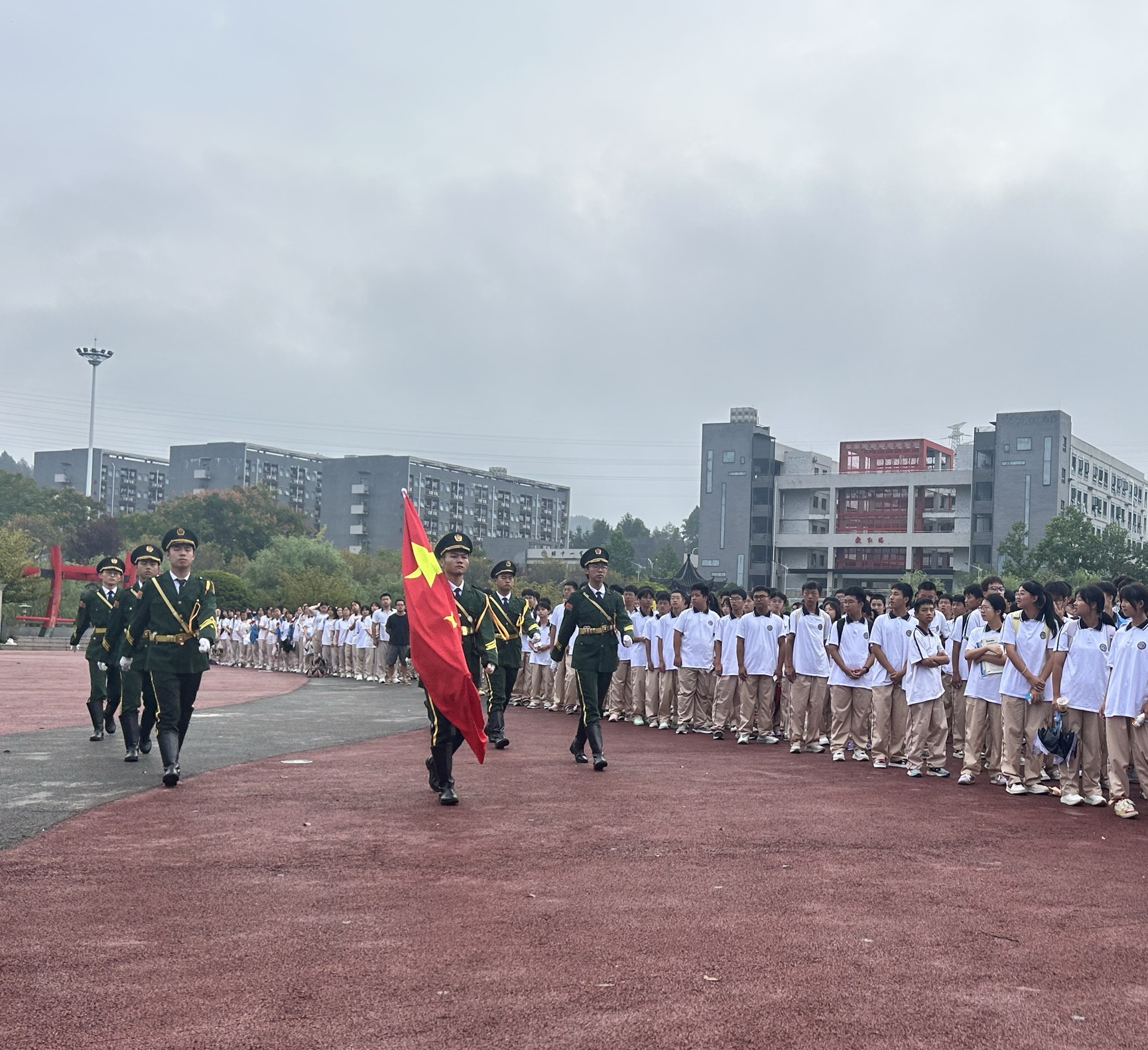2025年9月15日早上7:30我校如期举行了本学期第3周的升旗仪式。本次升旗仪式的主题为:牢记使命、勿忘国耻。