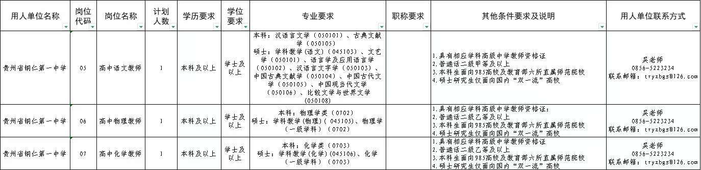 - 1002025年铜仁市市直单位公开招聘工作人员铜仁一中招聘教师...