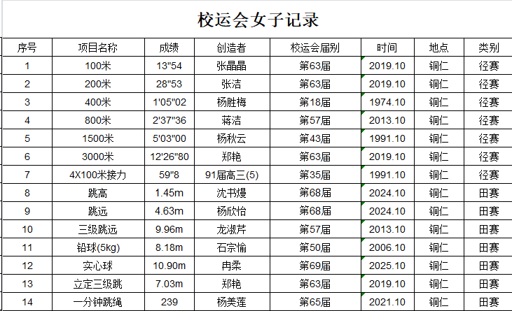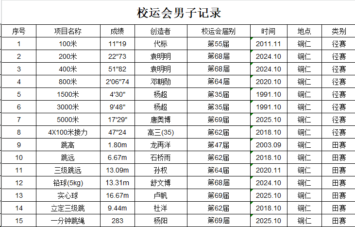 首页 > 专题 > 铜仁一中第69届田径运动会 > 第69届校运会记录